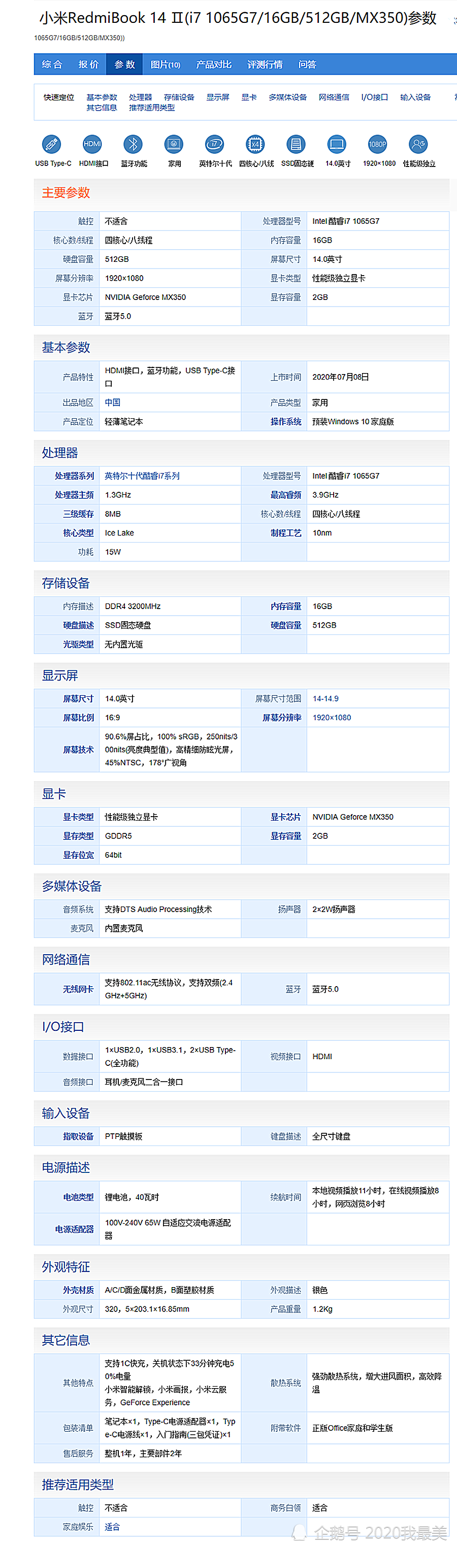 第四款:Redmi Book 14 Ⅱ(i7 1065G7/16GB/512GB/MX350)【参考价:5699元】