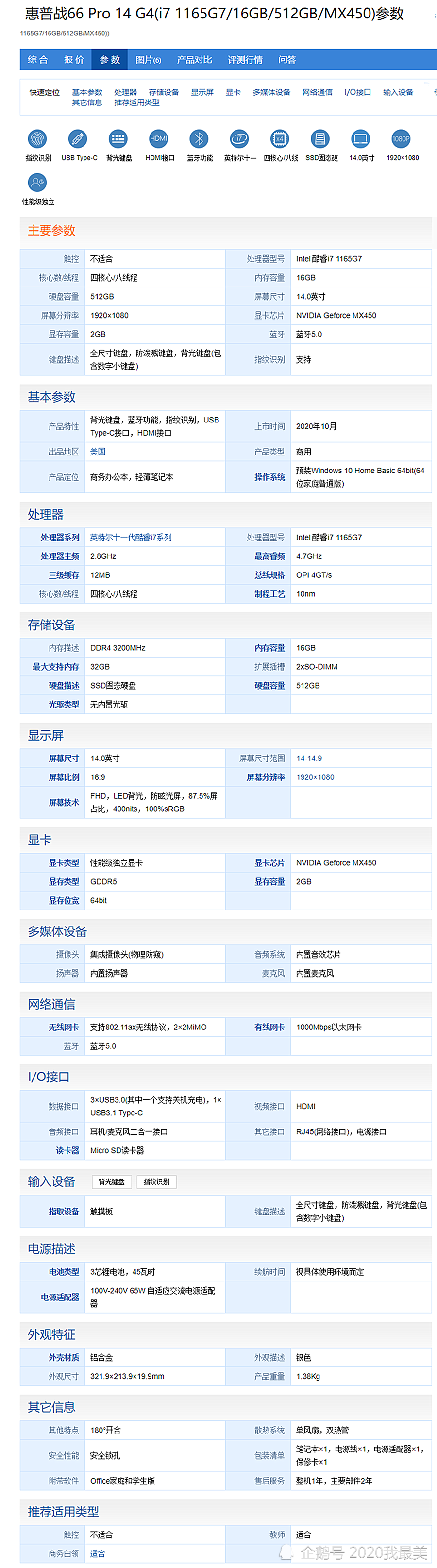 第三款:惠普战66四代(酷睿i7-1165G7/16GB/512GB/MX450/高色域/14英寸)【参考价:6099元】