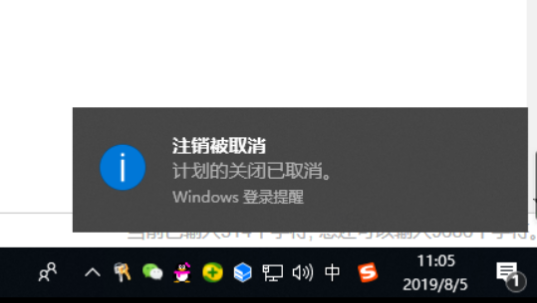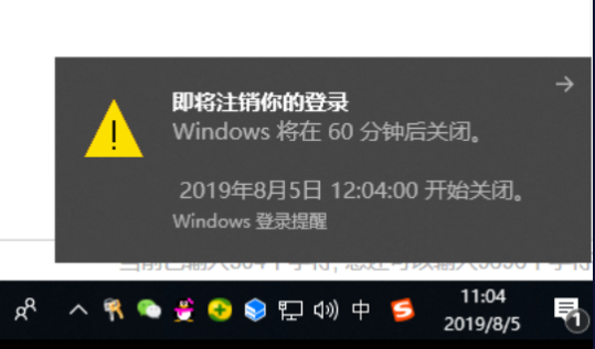 4、关机计划取消,如果在设置关机时间前1分钟又出现提示,再输入关闭命令才能彻底取消。这可能是微软的一个bug