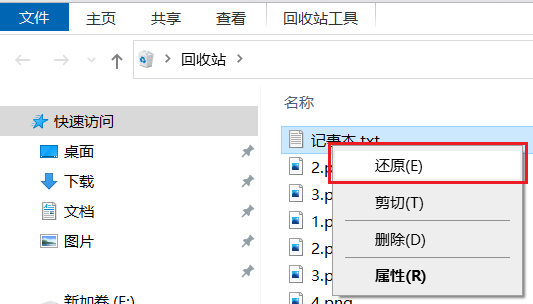 点击进入回收站,页面右侧列表中找到被删除的文件,直接鼠标右键该文件,再点击“还原”即可,这样删除的文件就会回到原先储存的磁盘位置。