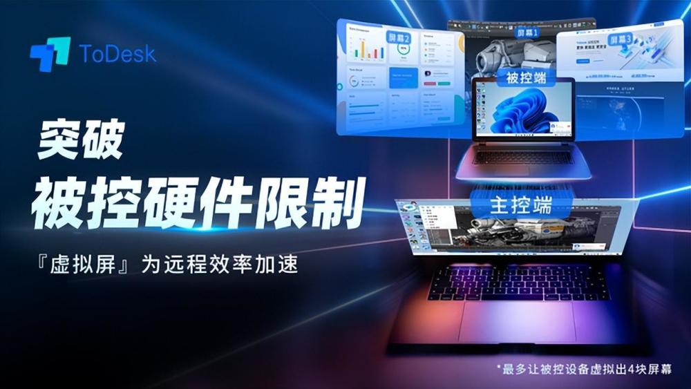 拓展被控虚拟屏,被控没有物理显示屏或者只有一台物理显示屏,可以使用虚拟屏功能拓展被控屏幕,就能让主控多个显示器利用最大化,多个屏幕处理不同事务,开启主被控多线程工作。