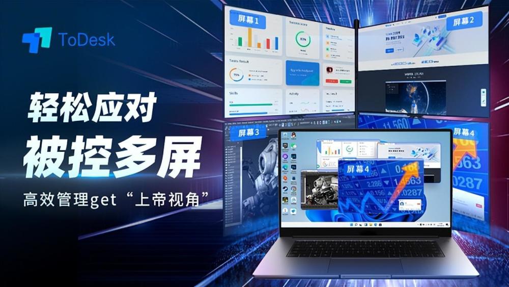 为解决办公场景中被控拥有多台显示器,而主控仅一个屏幕的状况,ToDesk特别研发了多屏功能,开启后,主控方可以同时看到被控多屏内容,提升设计、编程、剪辑、实验室等多屏体验,同时操作效率更高。
