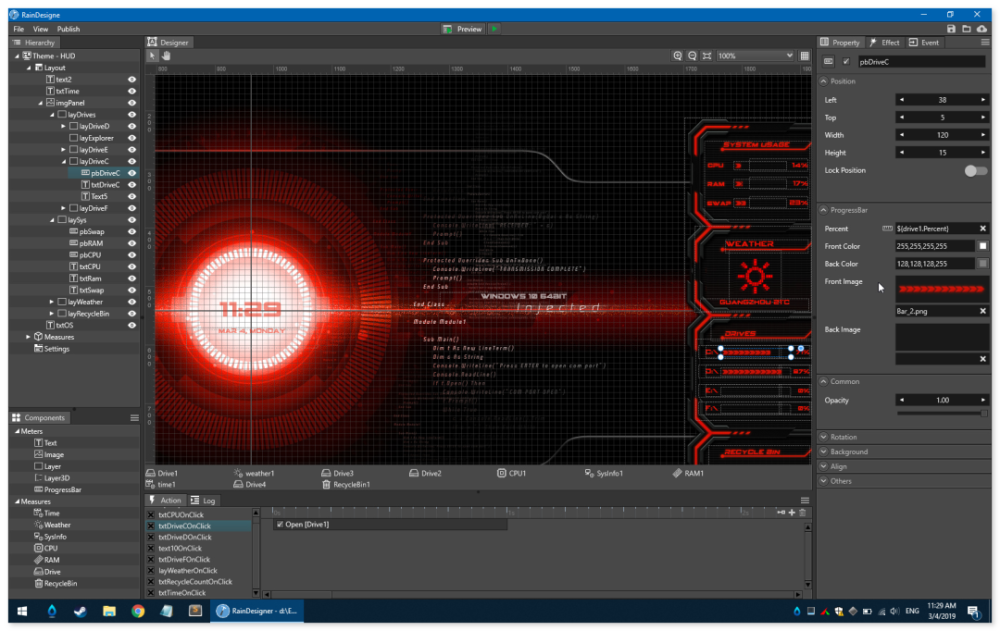 但是,RainWallpaper提供了视觉设计器,可以更轻松地直接编辑皮肤材质的颜色,显示位置等。