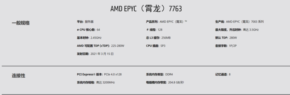 AMD EPYC 7763是目前世界上最强服务器规格处理器,内部多达64个核心,总计128个线程。
