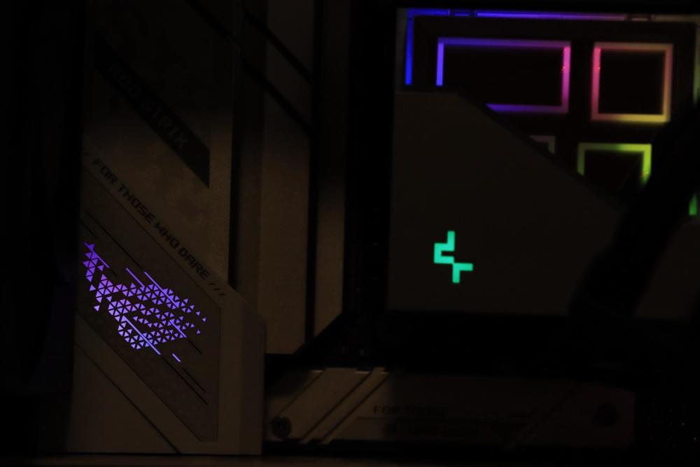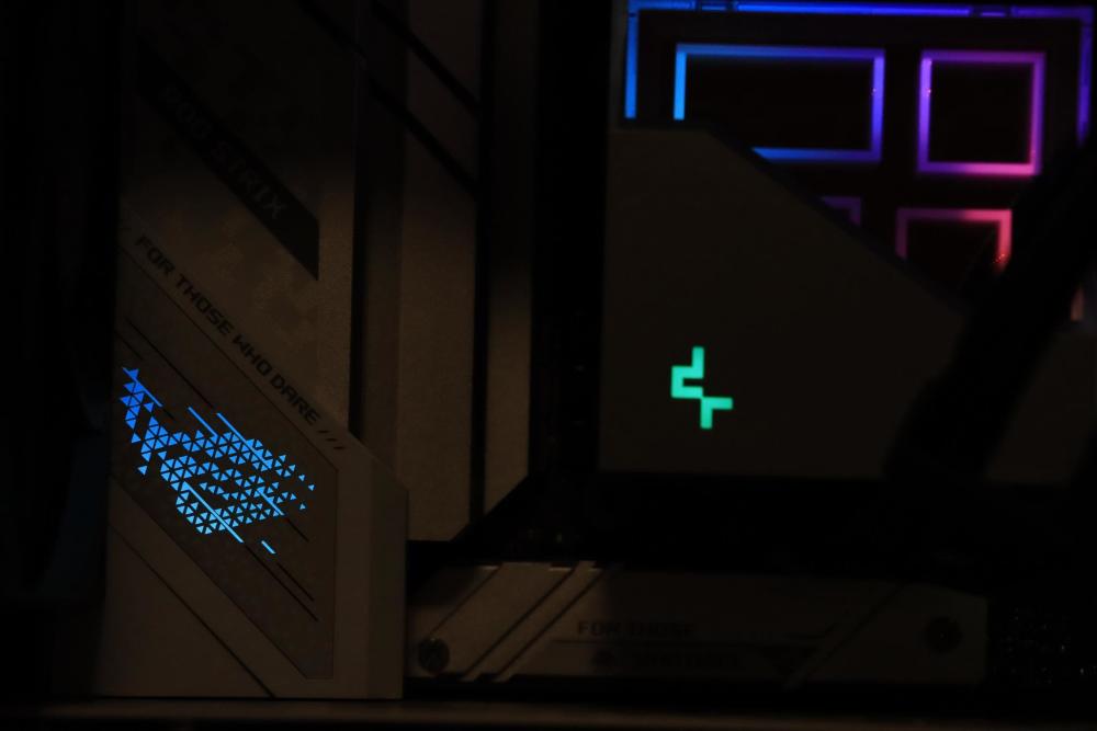 i/o 盔甲上有 STRIX 的暗刻铭文,以及 ARGB LED 区域。