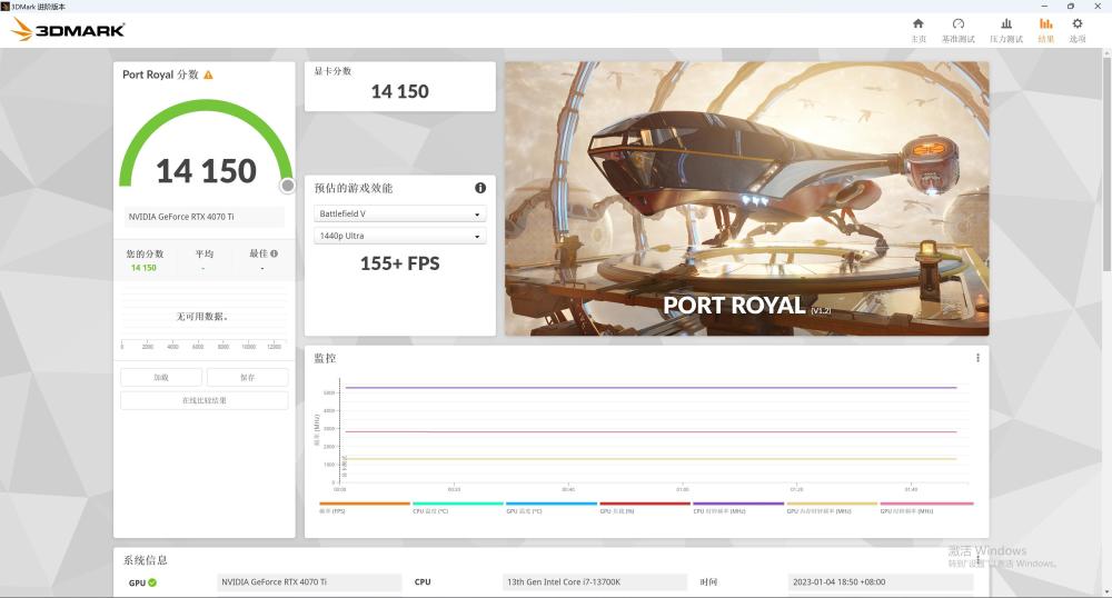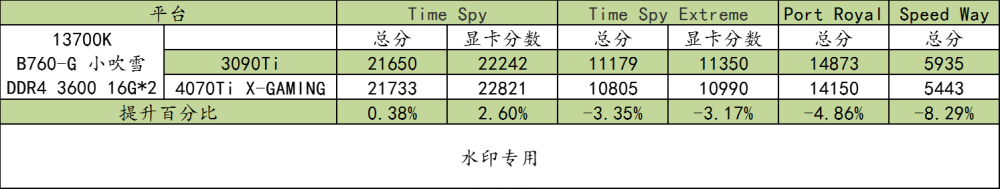 ▲ 索泰 4070Ti X-GAMING OC + 华硕 B760-G 小吹雪 D4 + 13700K 的 3Dmark 动态实时光线追踪性能测试。