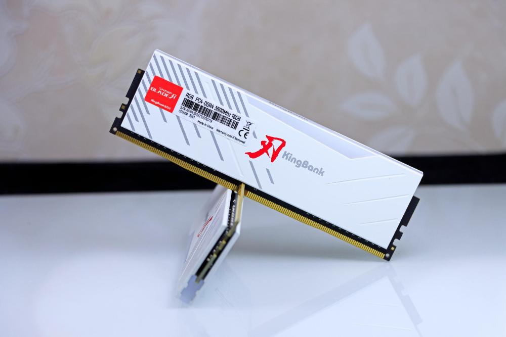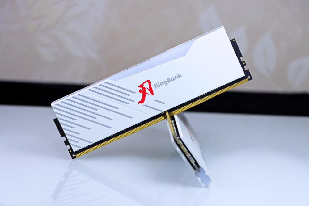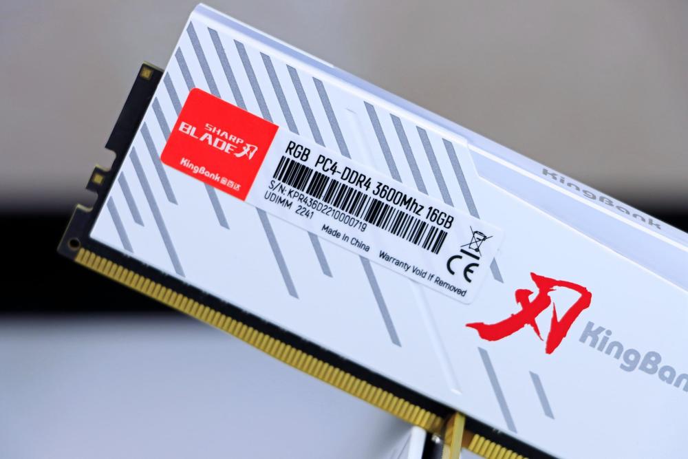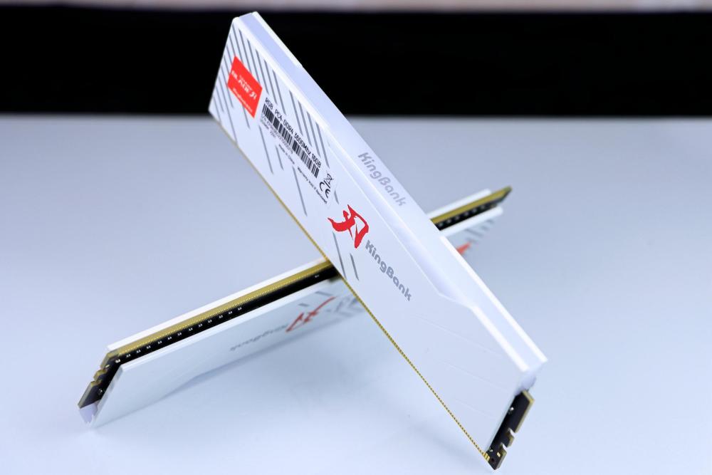 ▲ 金百达 刃 系列的外观非常出色,奶白色+简约的线条,舒适的配色的外观令人一见倾心。有铭牌贴纸的这一面是朝向外侧的正面。金百达 刃系列的散热马甲经过重新设计,马甲条采用出色的工艺制作,单面的合金散热马甲厚达 2mm ,这一切让内存的运行更加稳定,也可以让用户更为充分释放海力士 CJR 颗粒的超频性能。