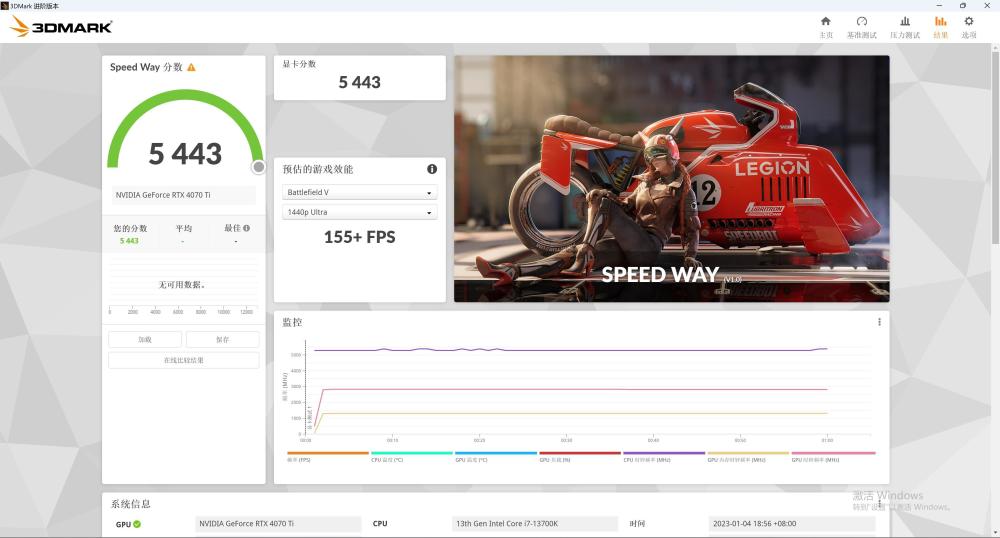 ▲ 索泰 4070Ti X-GAMING OC + 华硕 B760-G 小吹雪 D4 + 13700K 的 3Dmark Speed Way DX12 性能测试。