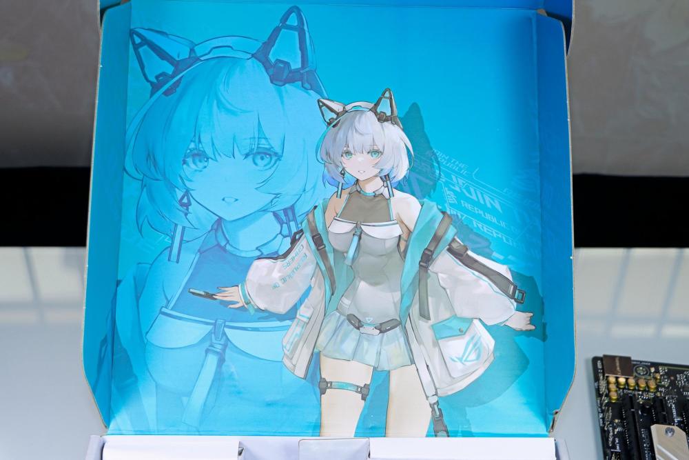 ▲ 翻开主板的盖子,可以看到 Se7en 雪武战姬形态,背面的铭文有 ROG 的风格。