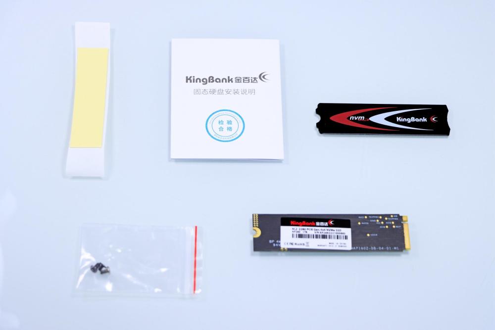 ▲ 内里包含说明书,KP260 1TB 本体,导热硅脂以及一个简易版的 M.2 散热片,3颗 M.2 紧固螺丝。