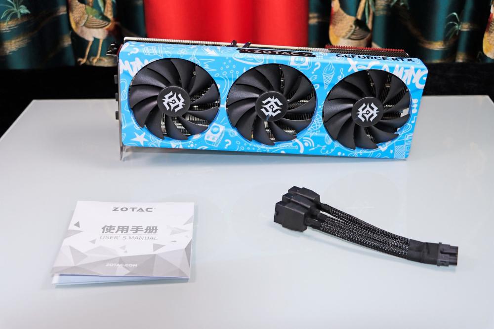 ▲ 配件全家福,有显卡本体,说明书,3*8pin 转 16pin 12VHPWR 转接线。
