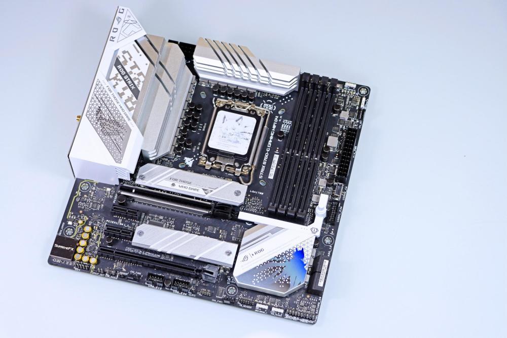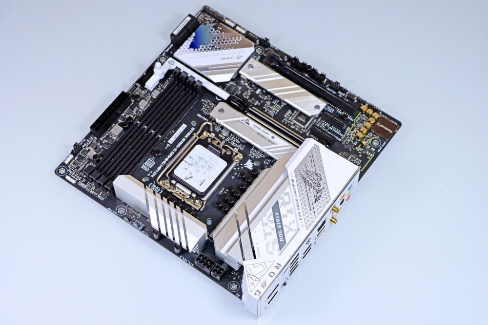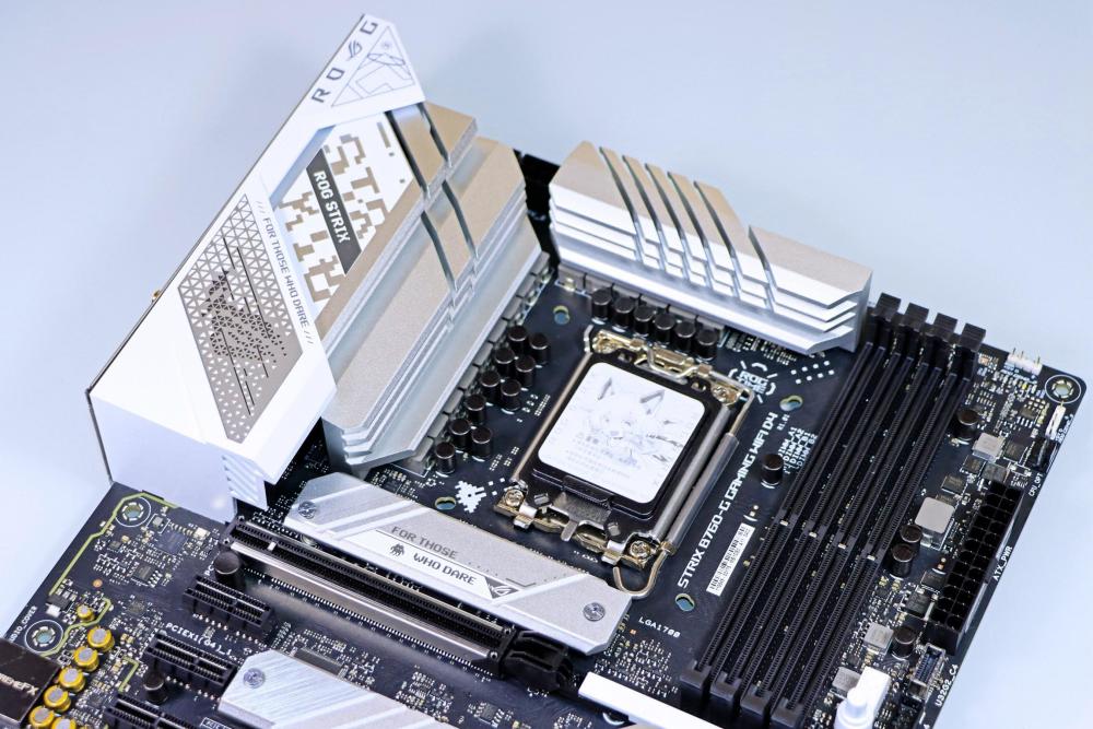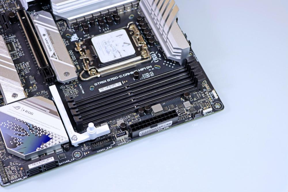 ▲ 华硕 B760 小吹雪 D4 的外观在外观上非常出色,黑白银灰的配色,十分吸引人眼球。主板上覆盖有较大规模的散热片,可以更好的为供电、PCH 以及 M.2 SSD 提供出色的散热功能。整张主板做工出色,用料上乘,拿在手上十分厚重。主板的扩展接口可以满足绝大部分用户的日常使用需求。
