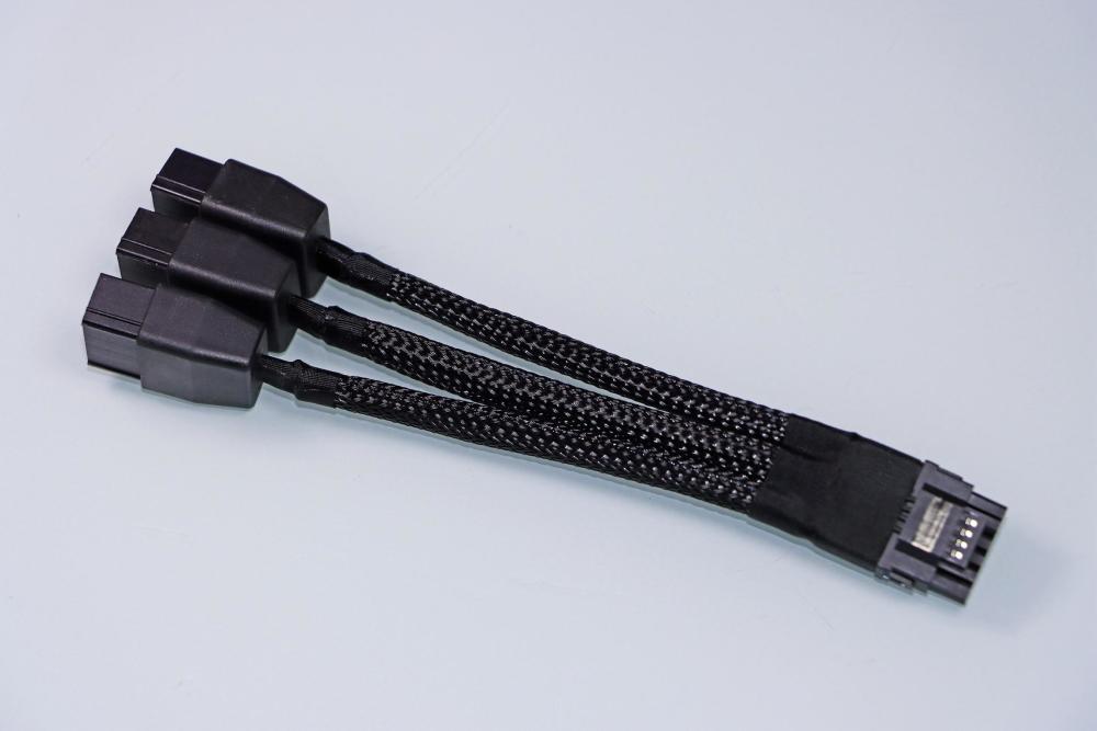 ▲ 3*8pin 转 16pin 12VHPWR 转接线,如果有 ATX 3.0 电源的话,更推荐采用电源自带的模组线。