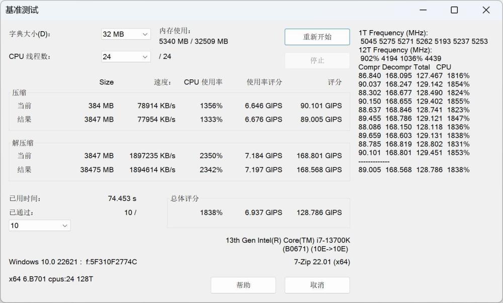 ▲ 7-Zip 压缩与解压缩性能测试。堪称旗舰级的性能表现。