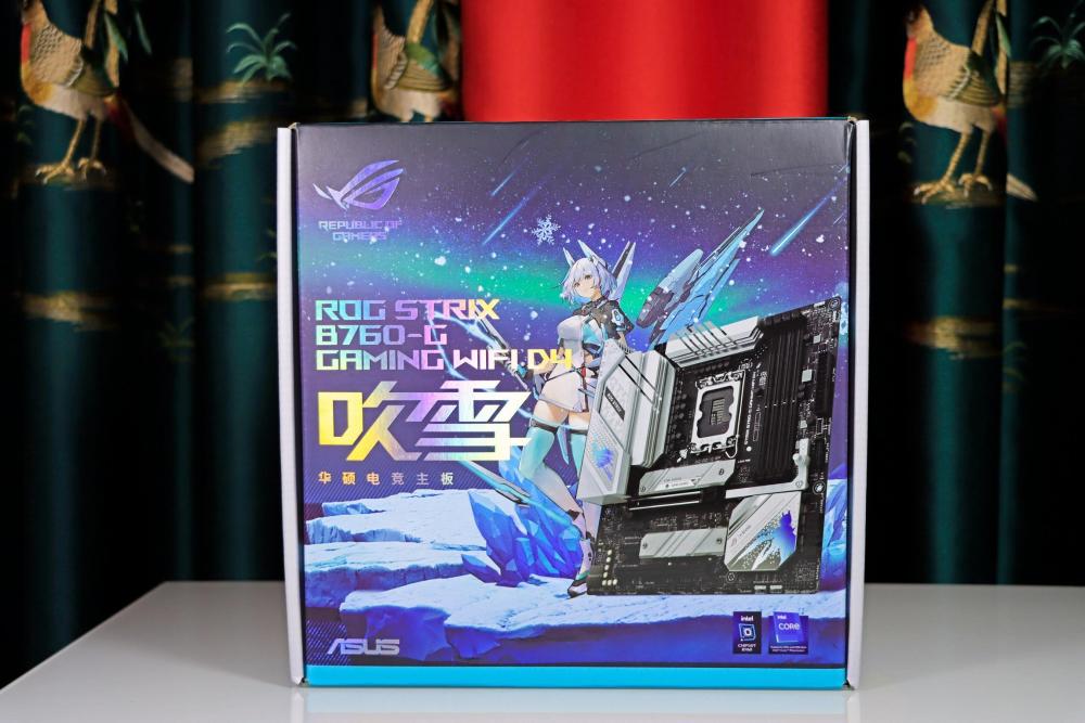 ▲ 华硕 B760 小吹雪 D4 的外包装延续着吹雪系列的包装风格,封面是 Se7en 雪武战姬形态,以及小吹雪 D4 的样子。可以看到小吹雪 D4 的颜值是非常出色的,当然它也是一款性能出色的主板。