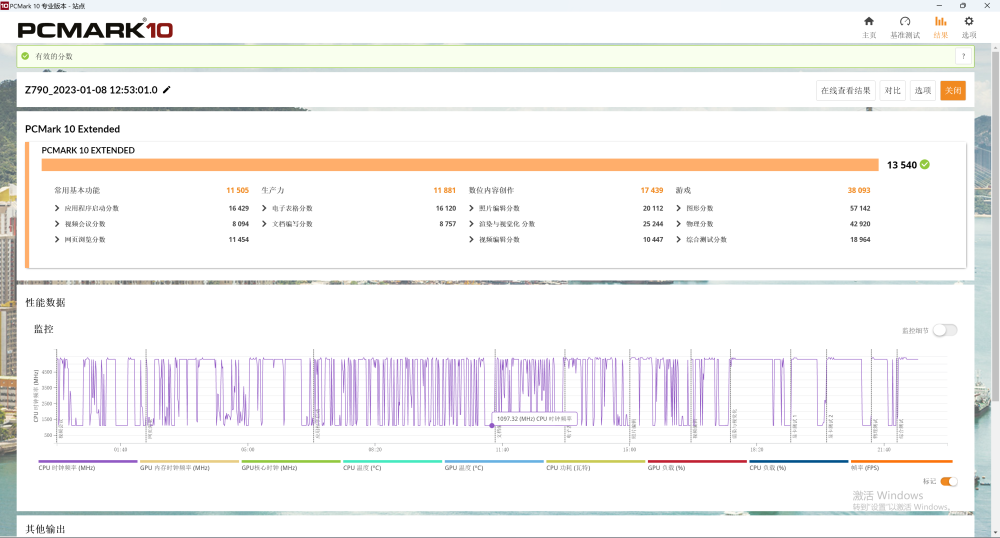 ▲ 这是 13700K + DDR4 3600 16G*2 + B760-G 小吹雪 + 4070Ti X-GAMING 整机的 PCmark Extreme 整机性能测结果。