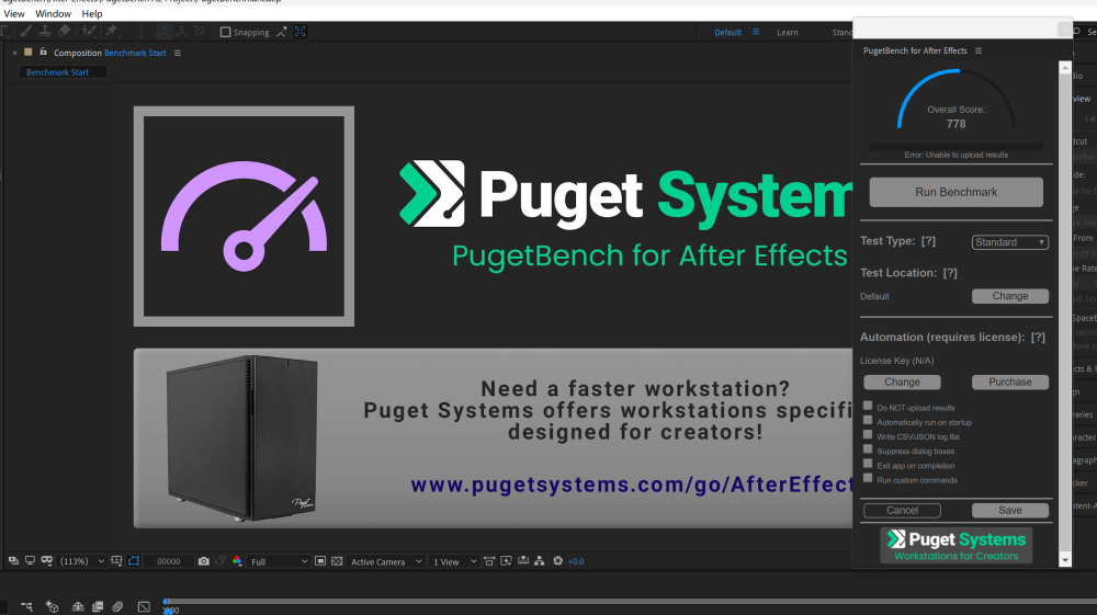 ▲ After Effects 也是很多专业人士都会用的后期软件,这是 13700K + DDR4 3600 16G*2 + B760-G 小吹雪 + 4070Ti X-GAMING 整机的测试成绩。结果还给出了仪表图,可以看到整机性能在整个行业的性能排位情况。