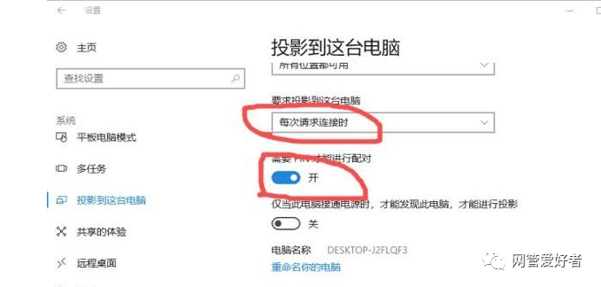 将要求投影到这台电脑设为每次请求连接时,如下图所示。