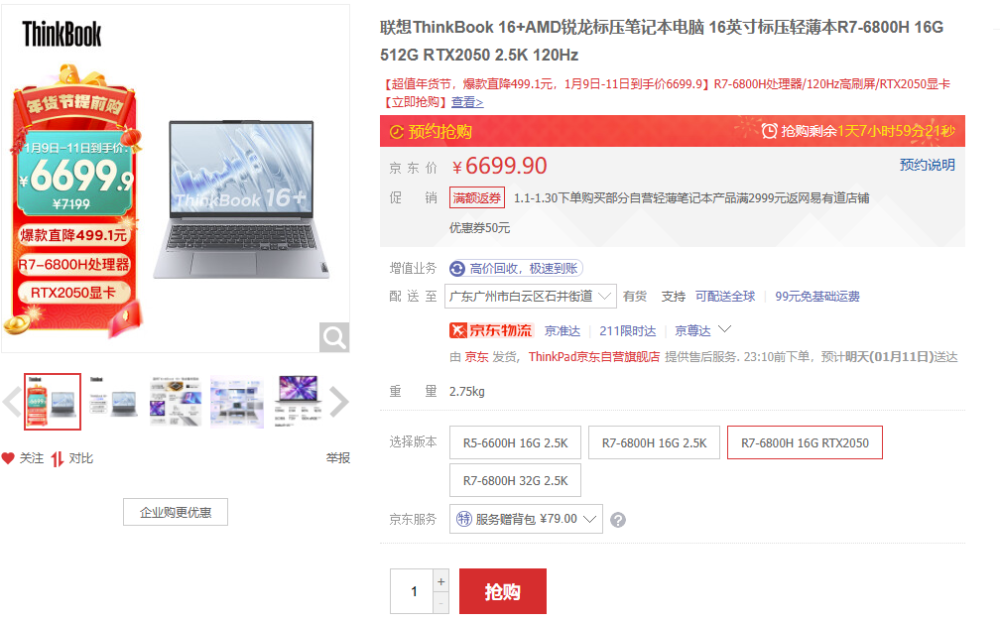 目前ThinkBook 16+在京东到手价6699.9元,预算不高的朋友可以考虑一下。