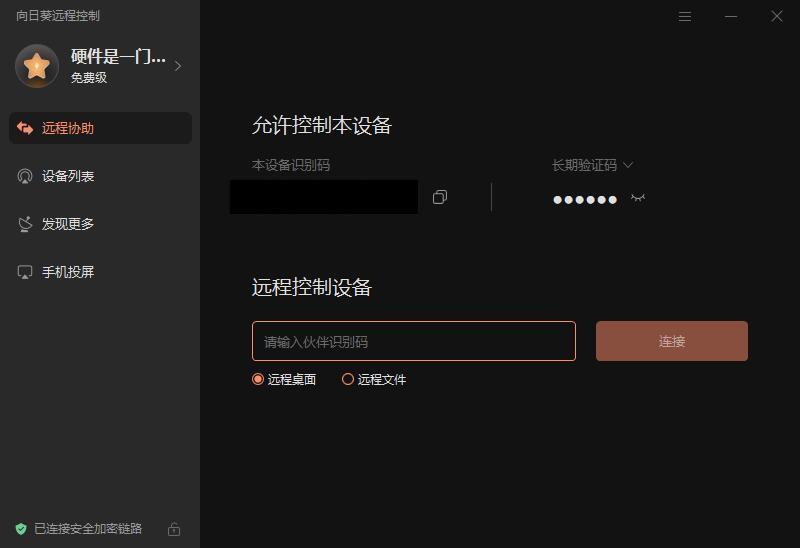 电脑端安装好向日葵远程控制APP后,在远程协助里,输入远程控制设备的识别码后,点击连接即可。远程控制时,可以选择远程桌面和远程文件两种方式。