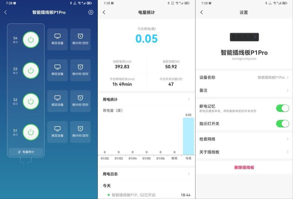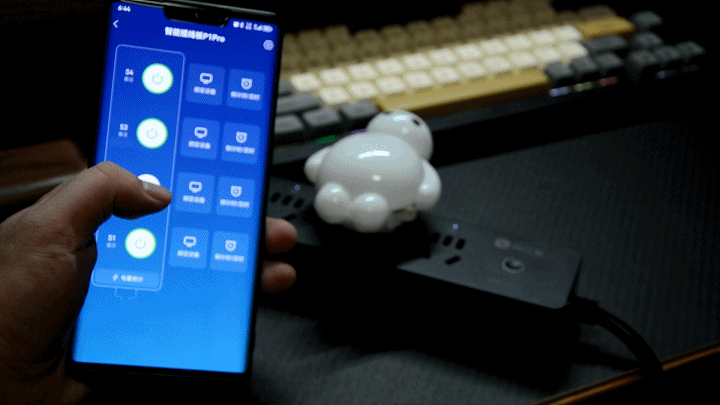 手机APP端可以远程控制P1Pro的各个插孔,例如,插线板连接WiFi,手机则采用5G网络,也可以轻松打开和关闭插孔。冬天天气冷,不想起床关闭台灯、充电器等设备,就可以手机远程进行关闭。