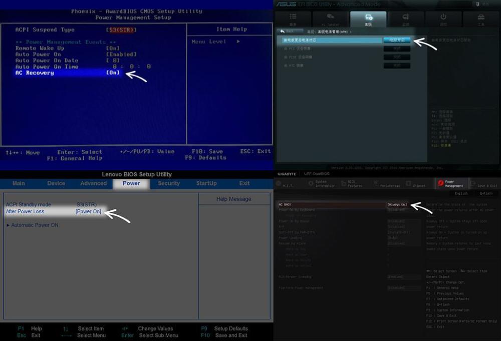 我的电脑是台式机、微星主板,其他品牌进入BIOS方式不一定一样,BIOS里对应描述的内容也不一定一样,这里给大家举几个例子,大家参考一下。台式机一般是按DEL键进入BIOS,Phoenix BIOS及大多数笔记本电脑则按F2键进入BIOS。电源管理项,Phoenix BIOS里为AC recovery,华硕为断电恢复后电源状态,联想为After Power Loss,技嘉则为PC BACK。总之,万变不变其中,都是一个意思。远程关机时,不是直接关闭插孔电源,而是让电脑进入正常关机程序,并且在2分钟后断开电源,避免直接断电导致电脑产生故障。