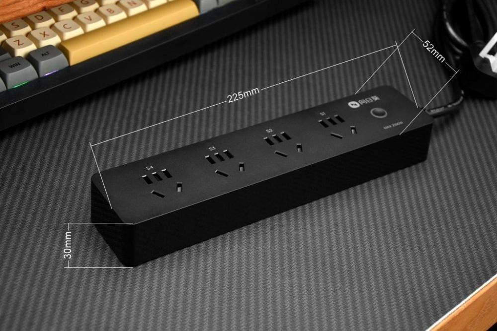 四插孔独立控制,相当于4个智能插座,如果能在指示灯侧面增加一个独立开关就更好了,日常不联网时也能单独控制每个插孔。插孔指示灯为白色,熄灭=断电。电源开关短按可以手动控制插线板断电/通电;长按5秒后后可以重置设备,开关采用蓝白两色,熄灭=断电(为了不干扰睡眠,也可以APP人为关闭灯光),蓝灯快闪=初始配置中,蓝灯常亮=正常连接向日葵APP,白灯常亮=正常联网,白灯快闪=无法连接WiFi/与服务器断开/配置失败,蓝白灯交替闪烁=固件升级中。