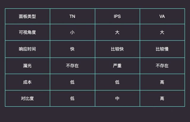 液晶面板是决定液晶显示器亮度、对比度、色彩、可视角度的材料,一台液晶显示器其80%左右的成本都集中在了面板上。液晶面板主要分为TN、IPS、VA三种。