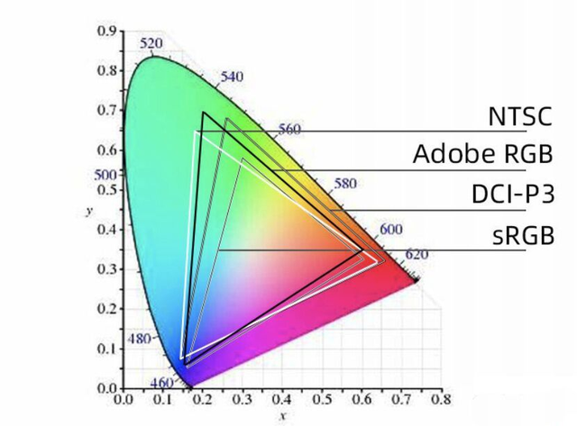 色域是表示显示器能显示的色彩的范围,通俗来说,就是显示器能显示的色彩范围。常见的色域标准有四种,那就是 sRGB、Adobe RGB、NTSC 以及 DCI-P3。