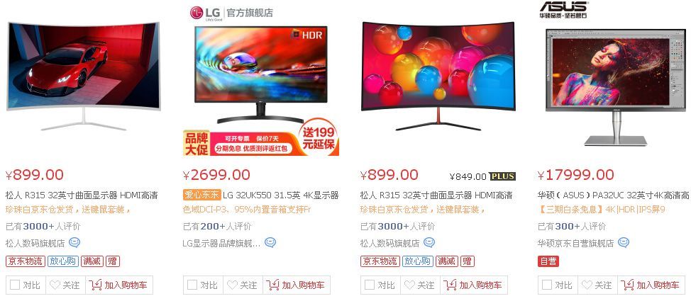 699元=32英寸……这样的价格在京东显示器分类页面里面,即使是“松人”这样的品牌都需要899元,更别说华硕、AOC、飞利浦、明基等“血统纯正”的显示器品牌旗下32英寸产品了。
