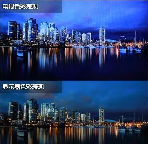 画面效果:厂商普遍将电视机的Gama值整体调高,达到2.4左右。如此一来,显示画面的色彩是浓郁多了,符合用户“颜色越鲜艳画质越好”的观点,但也远远偏离了正确的颜色。而显示器的Gama值一般是2.2左右,虽然其显示画面的色彩没有电视机那么诱人,但却更加接近于事物本身的颜色。