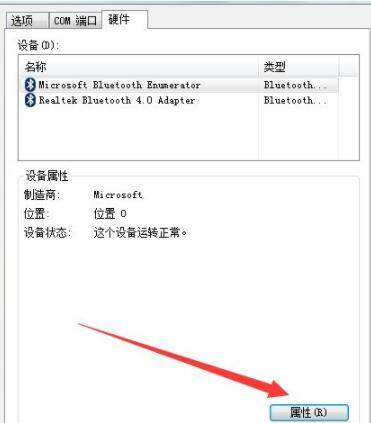 然后在硬件的页面内,我们可以看到下图有一个属性的选项,点击选择这个熟悉即可。