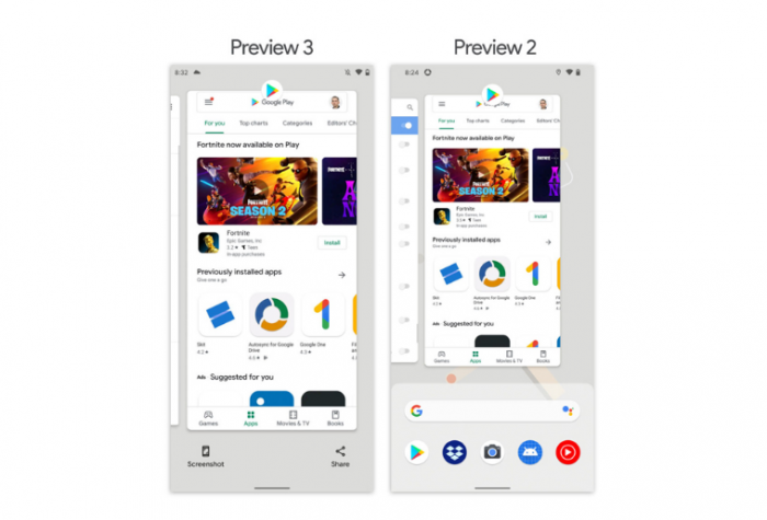 据外媒消息,在 Andorid 11 Preview 3 测试版系统中,谷歌对新系统的多任务界面已经改造完毕,调整之后新的多任务管理页面会显示更大的 App 卡片,还新增App 卡片删除撤销操作和快速截屏两项功能。
