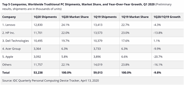 ? 2020 一季度全球 PC 需求飙升,出货量下降