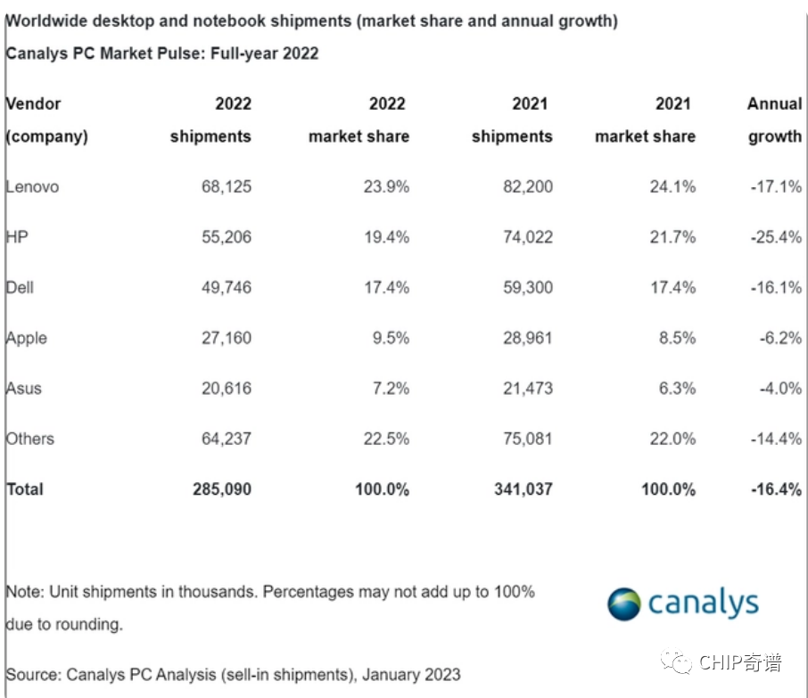 手机访问:wap.265xx.com2022年全球PC出货量排名出炉,苹果与华硕同比降幅最小