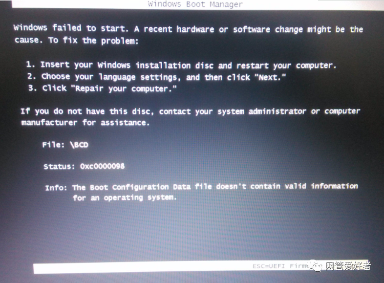 信息:由于关键系统驱动程序丢失成损坏,因此windows无法加载