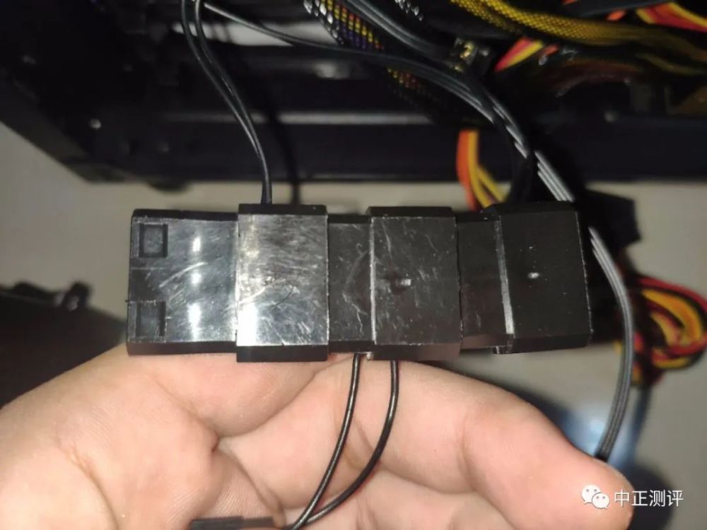 找到电源大4PIN接口,并与3个机箱风扇一起串联。
