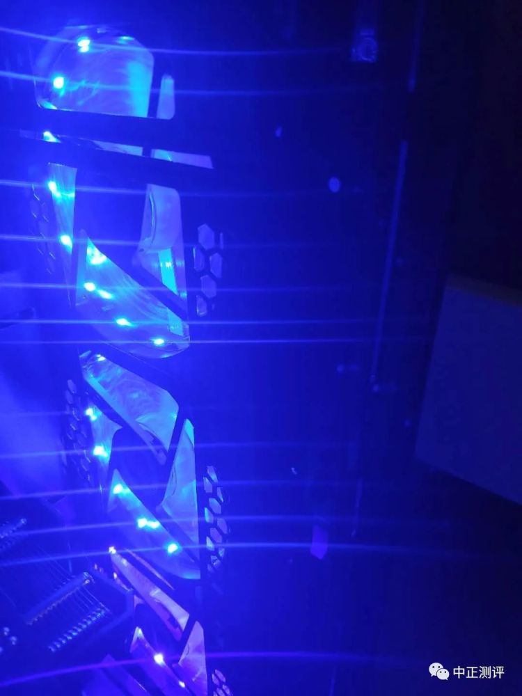 最后安装完成,开机蓝色光效。还有噪音方面表现良好,没有特别吵,被CPU风扇和其他机箱风扇覆盖,这款是1200RPM风扇(纯手机拍摄,直男患者