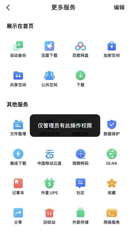 不过需要注意的是,绿联云管理员与普通用户的权限还是有区别的,例如像 Docker、数据迁移、DLNA、外置 UPS 等功能就只能管理员才有权限使用。所以如果你真的打算和朋友们共用一台 NAS 设备,一定得提前商量好,根据自己的详细用途来分配管理员的使用权。