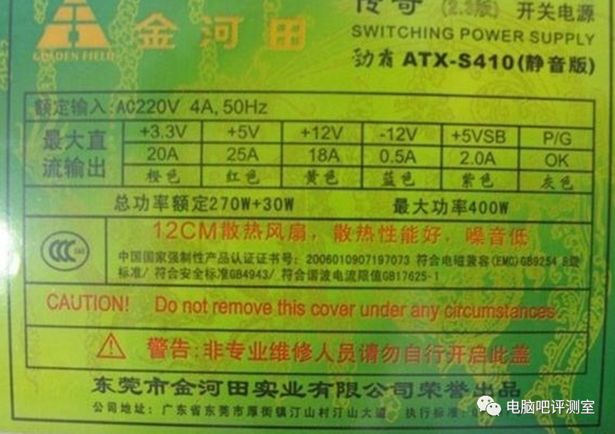 通过表格可知,原配电源是金河田ATX-S410,其额定功率为270W,12V输出为192W,可以满足升级四核处理器+HD4650的搭配需求。