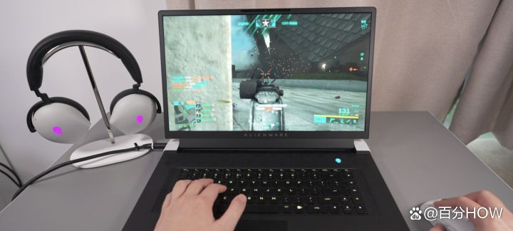 在外星人的「预言」设计语言下, 第一眼就给人一种来自宇宙飞船的未来感。 不管是 A 面白色材质、出风口蜂窝状格栅, 还有游戏本中最酷炫的 RGB 灯带, 这些元素加在一起可以说无可挑剔。