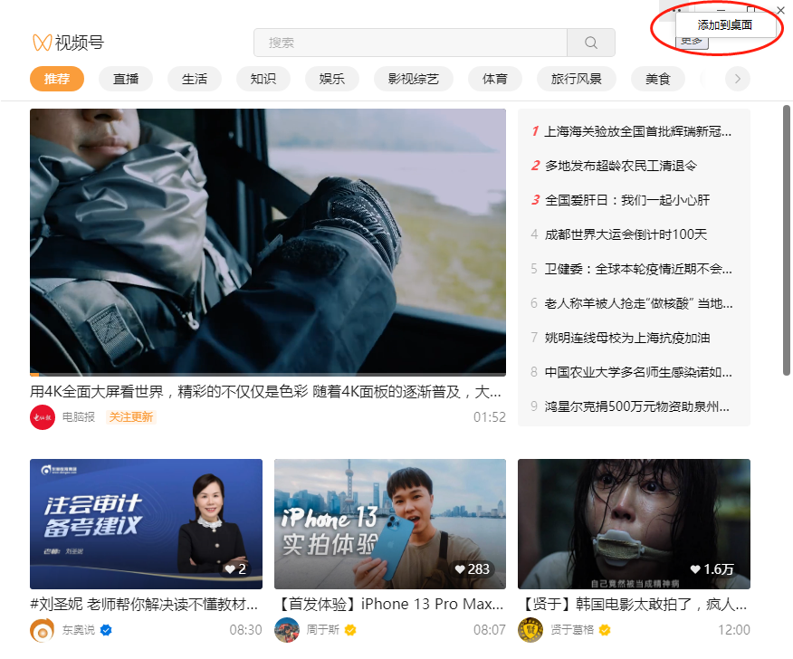 视频号新增添加到桌面