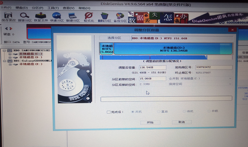 第二种比较专业点,使用DiskGenius 软件扩充C盘的空间,从根本上解决空间小的问题,不过此操作需要在WINPE下进行,不适合小白,下面为详细步骤