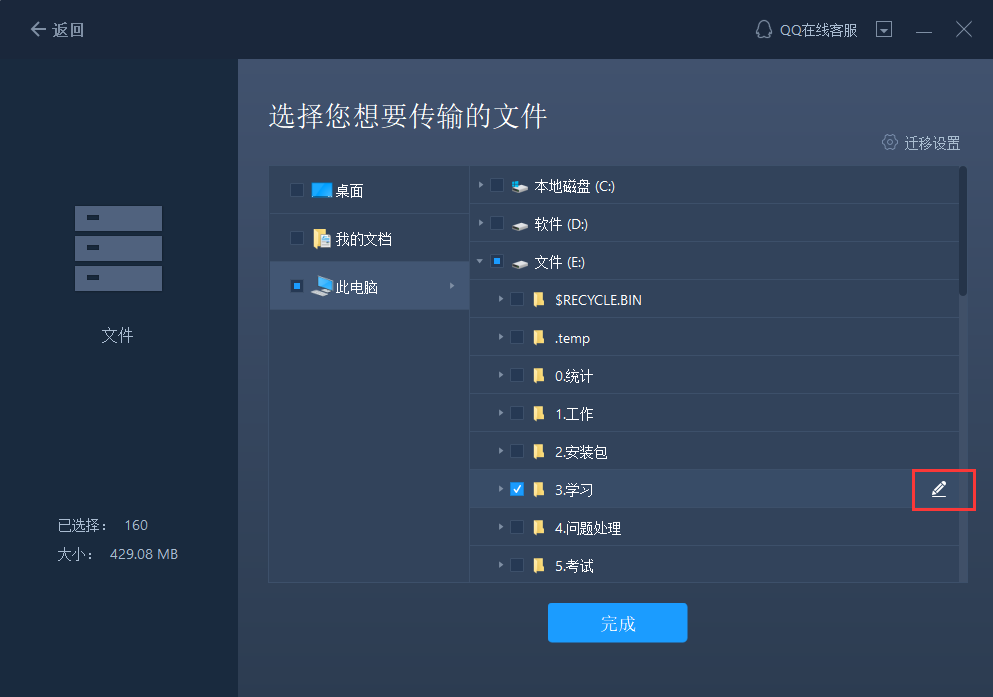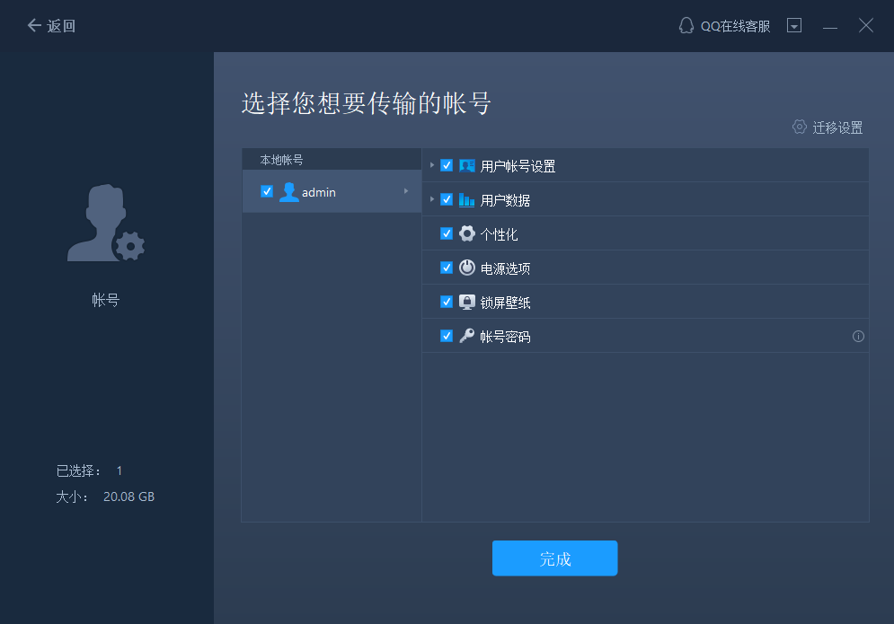 完成上述所有设置后,请点击“迁移”按钮以开始传输。