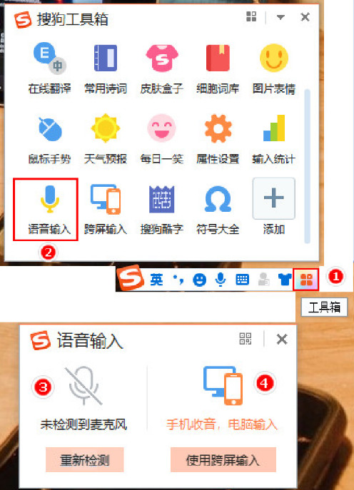 步骤:打开电脑搜狗输入法的工具箱,找到“语音输入”,打开麦克风就可以开始录音转写文字了,如果你的电脑没有安装录音设备,也可以使用手机收音,再用电脑转写哦,不过使用这个办法需要在一个安静的环境下进行。
