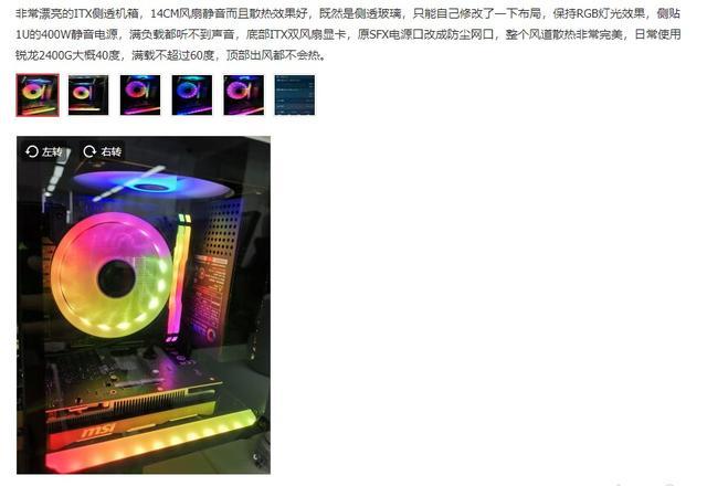 看到京东评价里有DIY大神将这款机箱进行了简单的改造,利用了1U服务器电源,可以完全展示内部硬件的RGB效果,从下图看效果也是非常惊艳的,动手能力强的话,可以借鉴一下。我自己也正在使用这款机箱,搭配AMD 2400G组建的一台APU小钢炮,下面是我的实拍图。