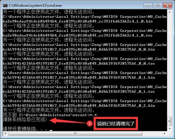 当出现了清除系统垃圾已完成的时候,就说明电脑垃圾已经清理完毕了,然后就可以关闭了。然后这个一键清理.bat文件自己保存好,以后需要清理的时候点击运行即可。