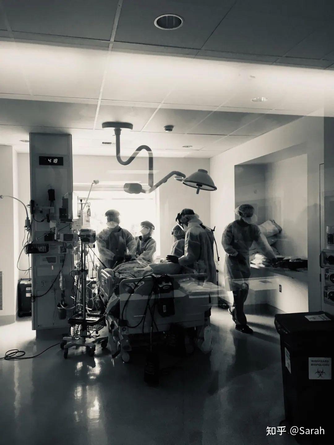 图2:激素对新冠死亡率的影响刚接管ICU时,每天往外搬裹尸袋,我接管ICU后,直到一星期才出两个死亡病例,ICU护士们都已经开始欢呼了,大家确实看出差别了。所以即使RECOVERY发表并成为指南以后,我们延续使用甲强龙。从选用的剂量和时间上看,甲强龙方案的激素剂量换算后是地塞米松用量的两倍左右,RECOVERY研究中地塞米松用了10天,我们用的甲强龙是每3天测一次,如果有好转就立刻停药,最后甲强龙方案的平均疗程是7天。如果第7天时就停药,就可以直接停掉激素、不需要逐渐减量;但超过6天的话,就需要小心,逐渐减量更为稳妥。五、并发症评估再次回到这个具体病例:7天后,患者体温已经基本正常,生命体征、血压都好转。虽仍然需要吸50%的氧气,但是此时PFR比值为176,明显好转了。做了实验室检查,虽然炎症因子的指标还是较高的,但是比入院时全面降低了,心肌酶没有继续增高,肝功能也有所好转。血象等没什么变化,但我们认为影响血象的主导因素是「他是骨髓移植患者」,而不是因为新冠,所以没有多加关注。结果两天后,12/18,世界杯决赛正在进行,肿瘤医院ICU打电话说,这位患者又开始出现缺氧,体温37摄氏度;心率139;出现了房颤;血压也不稳定了,收缩压97mmHg、舒张压57mmHg;呼吸频率30次/分,氧分压88%,吸入氧浓度90%;紫绀、气急。这是怎么回事?现在的鉴别诊断应该想到什么?会不会出现并发症?突然缺氧会不会是因为出现了肺栓塞?会不会出现了细菌性肺炎,或各种脓毒血症?这两种情况大家都比较熟悉。在这里我给大家重点介绍另外两个概念,1、心肌炎;2、多系统炎症综合征(MIS)。这位患者显然需要气管插管了(前几天用的一直是高流量氧疗)。肿瘤医院周末没有fellow值班,我必须老将出马。带着一位护士、一位呼吸治疗师准备好插管,当时的世界杯战况是阿根廷与法国3:3持平,患者这时不干了。他喘着气求我们:「等看完点球,再给我插管」。好在点球的结果很快出来了。新冠患者的气管插管该怎么做?下图是现在的ICU里抢救的场景(图3),两位fellow在做气管插管。过去,我们做气管插管用直接喉镜,将患者下巴提起来后,医务人员的眼睛需要正对着患者的嘴来寻找声门、做气管插管。现在使用了新技术后,大大降低了医务人员被传播的危险。