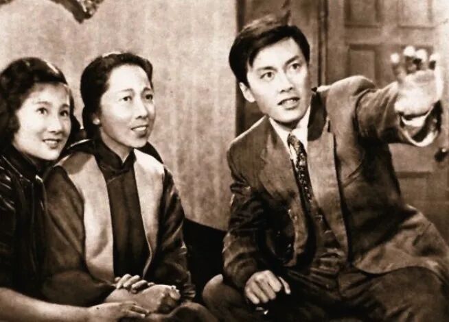 图1 《 一江春水向东流 》剧照 郑正秋之后,是蔡楚生。其《一江春水向东流》(1947)作为此时的集大成者,以一个上海普通家庭为载体,通过讲述张忠良与素芬、王丽珍等人的爱情纠纷,将普通人在乱世中的挣扎与选择以史诗的形式呈现于银幕之上(图1)。而抗战胜利前后巨大的戏剧性社会变迁以及由此带给每个个体的家愁、乡愁与国愁, 却如同那滚滚逝去的江水般,说不清也道不明了。蔡楚生将家庭伦理作为一种结构性的沉淀,进行了“家”与“国”的置换,以小家庭的浮沉变幻来隐喻整个民族正在遭遇的痛苦现实,将电影主旨抬高至社会—国家层面。再之后的代表是谢晋。同样深受中国传统文化影响的他,在新时期前后,延续了前辈影人的传统,影片主题多从伦理的“家”出发,实现了电影艺术与历史表述的质的飞跃。不论是《舞台姐妹》(1964)所呈现的两种截然不同的人生结局、《牧马人》(1982) 中父与子两代人的直面碰撞,还是《芙蓉镇》里在“黑暗”中相伴舞蹈的温暖爱情,都成功地把悲剧性的历史话语编织进伦理叙事之中,形成了以家庭为内脉、政治表达为外衣的影片风格,有效地拓宽了中国伦理影片的想象空间。而后来所发生的有关“谢晋模式” 的讨论中对于其“道德神话”的攻击,也从反面论证了其对“家庭伦理”的倚重。