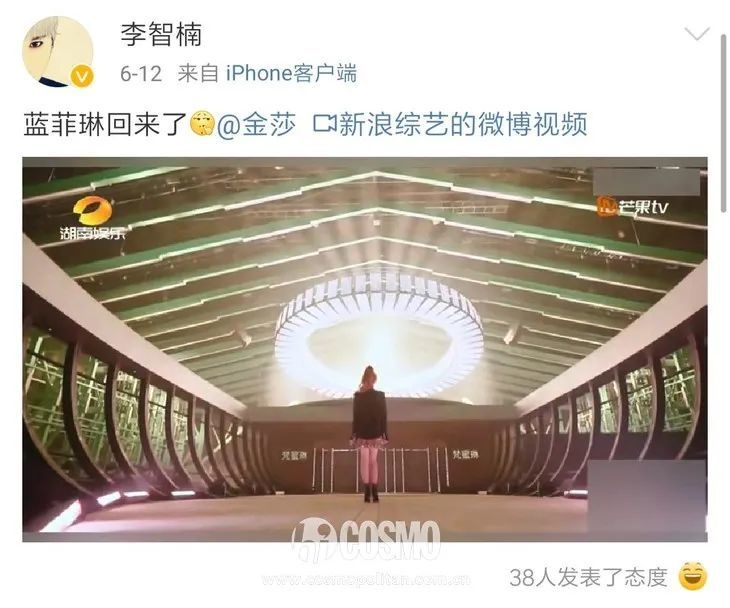 姐姐首播时,李智楠放出金莎的初舞台表演并配文“蓝菲琳回来了。”